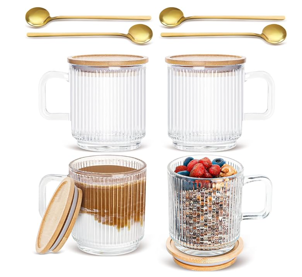 Elevate your coffee game with this sleek espresso machine, perfect for crafting lattes, cappuccinos, and more. Mugs and rose gold spoons are perfect for coffee, tea, Affogatos and more.