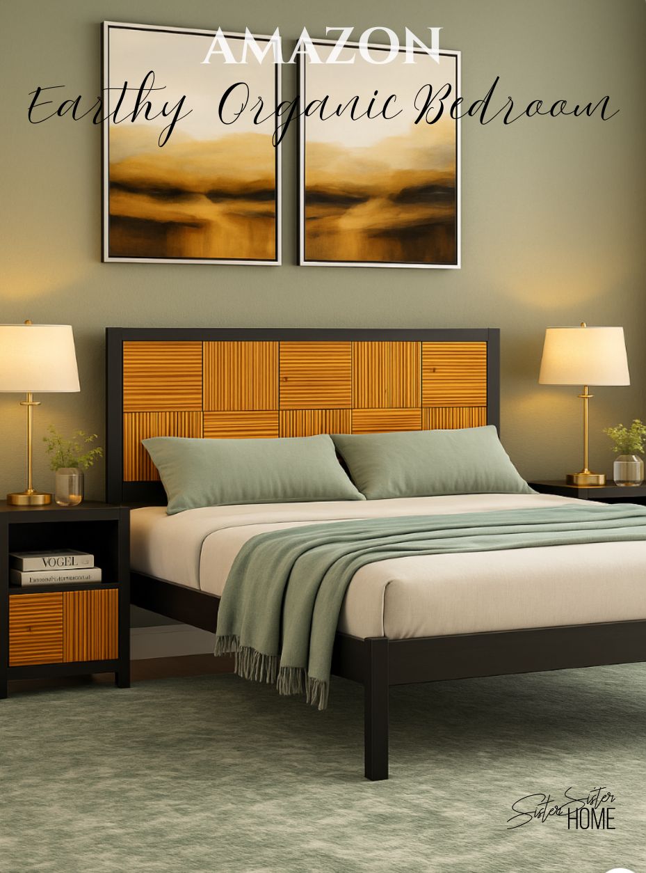 Create a serene retreat with this Earthy Organic Bedroom — blending natural textures, warm wood tones, and calming sage hues for an elevated organic feel.