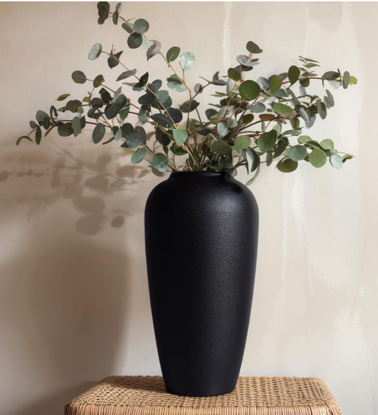 Organic modern spring porch refresh with black door, topiary trees, lanterns, and neutral outdoor styling for a warm, inviting entry
