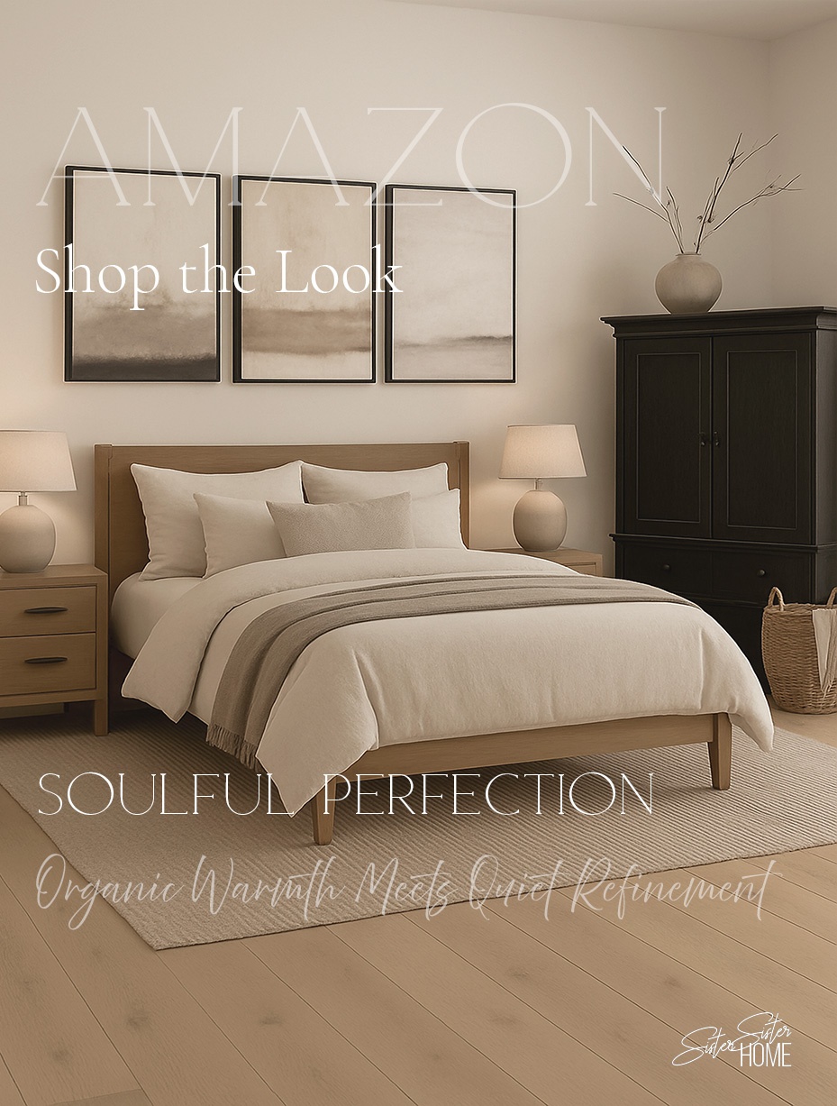 Soulful perfection meets organic warmth. Shop the look for serene, modern bedroom decor with natural textures, neutral tones, and timeless elegance.
