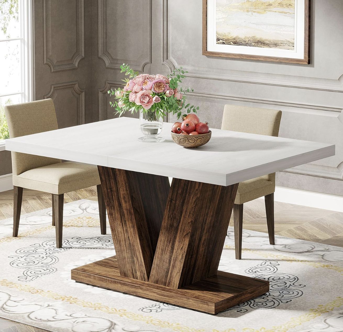 Organic modern small space dining setup featuring a square pedestal table, swivel chairs, and acacia wood accents — cozy, calm, and beautifully minimal.