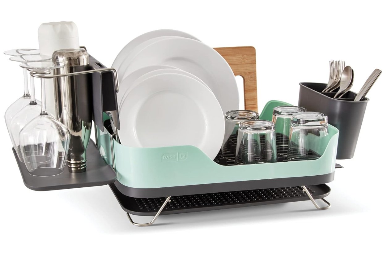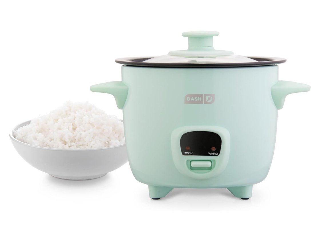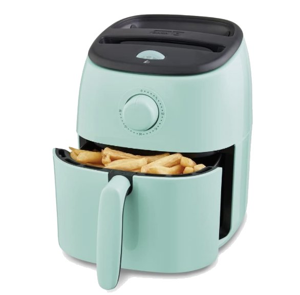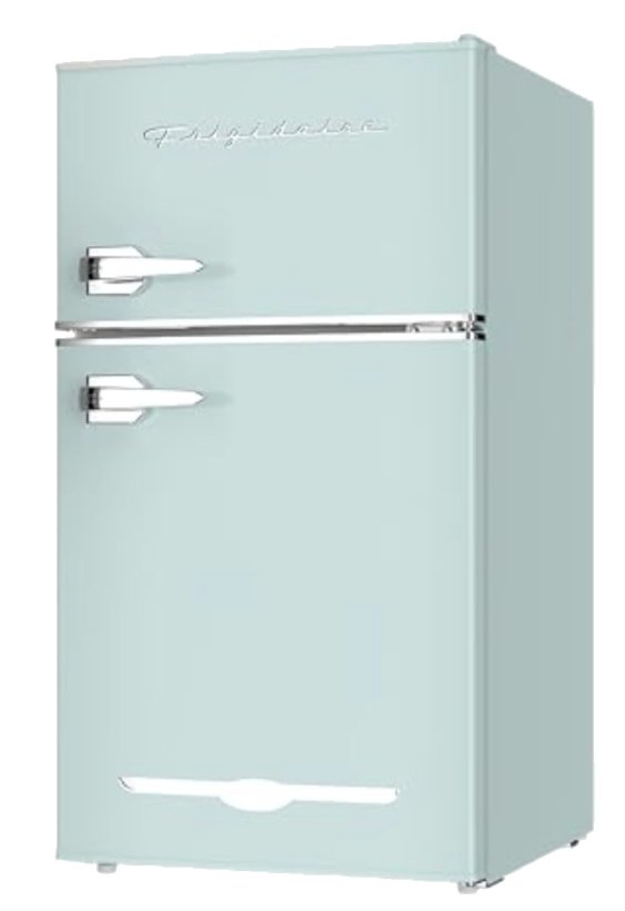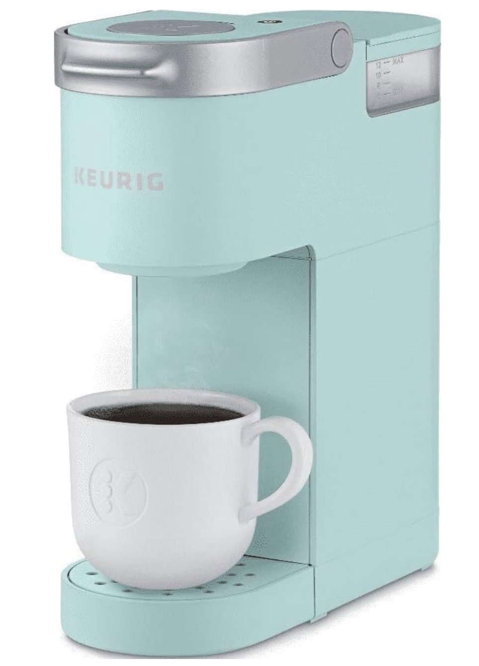 Aqua-toned dorm kitchen essentials—mini fridge, air fryer, Keurig & more—perfect for small spaces and college living.