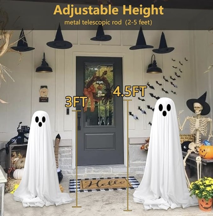 Glowing spooky ghost decorations for Halloween. Simple, festive porch and yard decor to create a fun haunted look