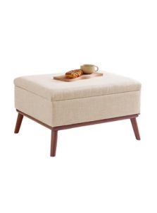 Stylish and functional, this mid-century modern storage ottoman offers hidden storage with a cushioned top, perfect as extra seating or a coffee table alternative.