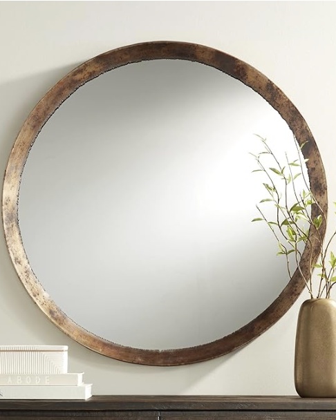 organic modern, console table, entryway styling, neutral home decor, statement pieces, reclaimed wood, round mirror, textured vase, decorative branches, stone bowl, minimalist decor, warm neutrals, natural textures, curated home, elevated styling