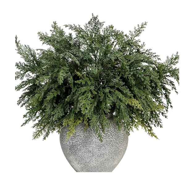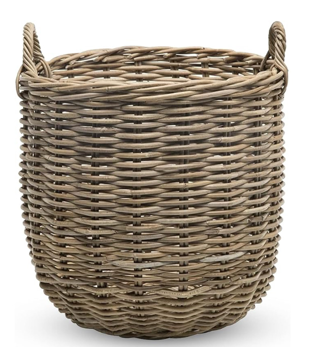 Organic modern winter porch styling featuring layered greenery, woven baskets, black lanterns, and neutral textures for a warm, welcoming front entry.